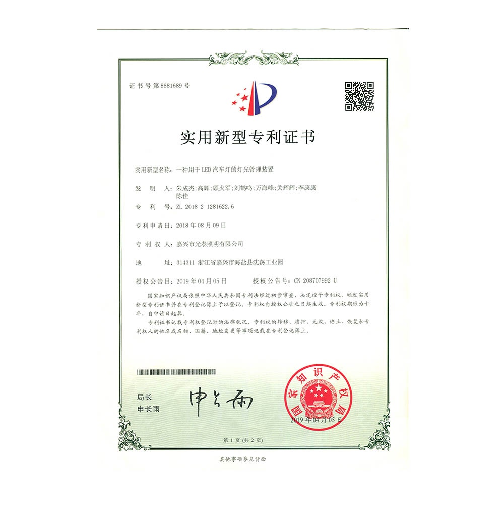 一種用于LED汽車燈的燈光辦理裝配201821281622.6